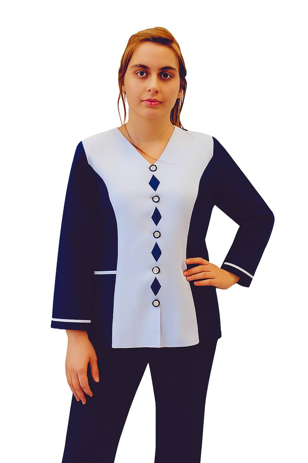 Chaqueta V blanco con lila