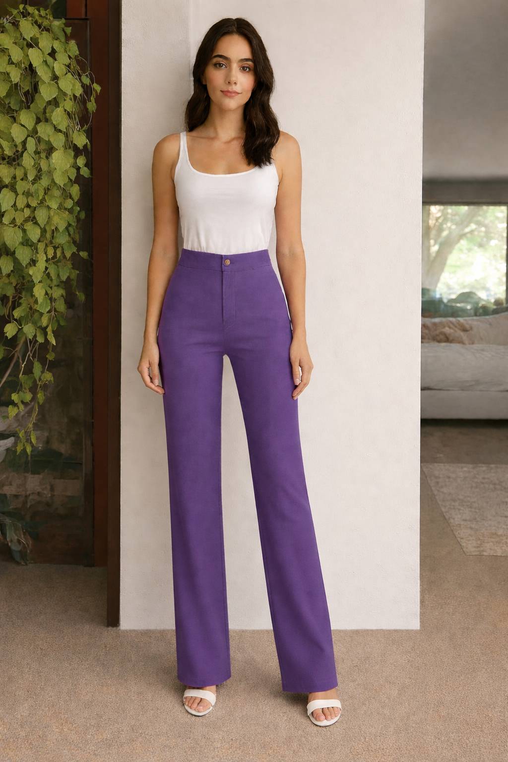 Pantalón elasticado trasero, botón y cierre delantero, sin bolsillos