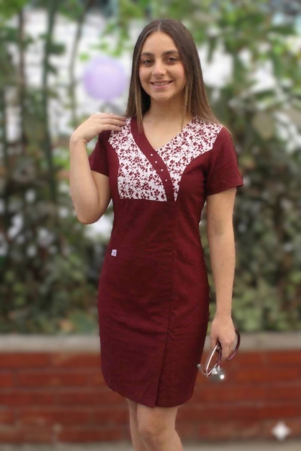 vestido Azeta blanco vivo burdeo